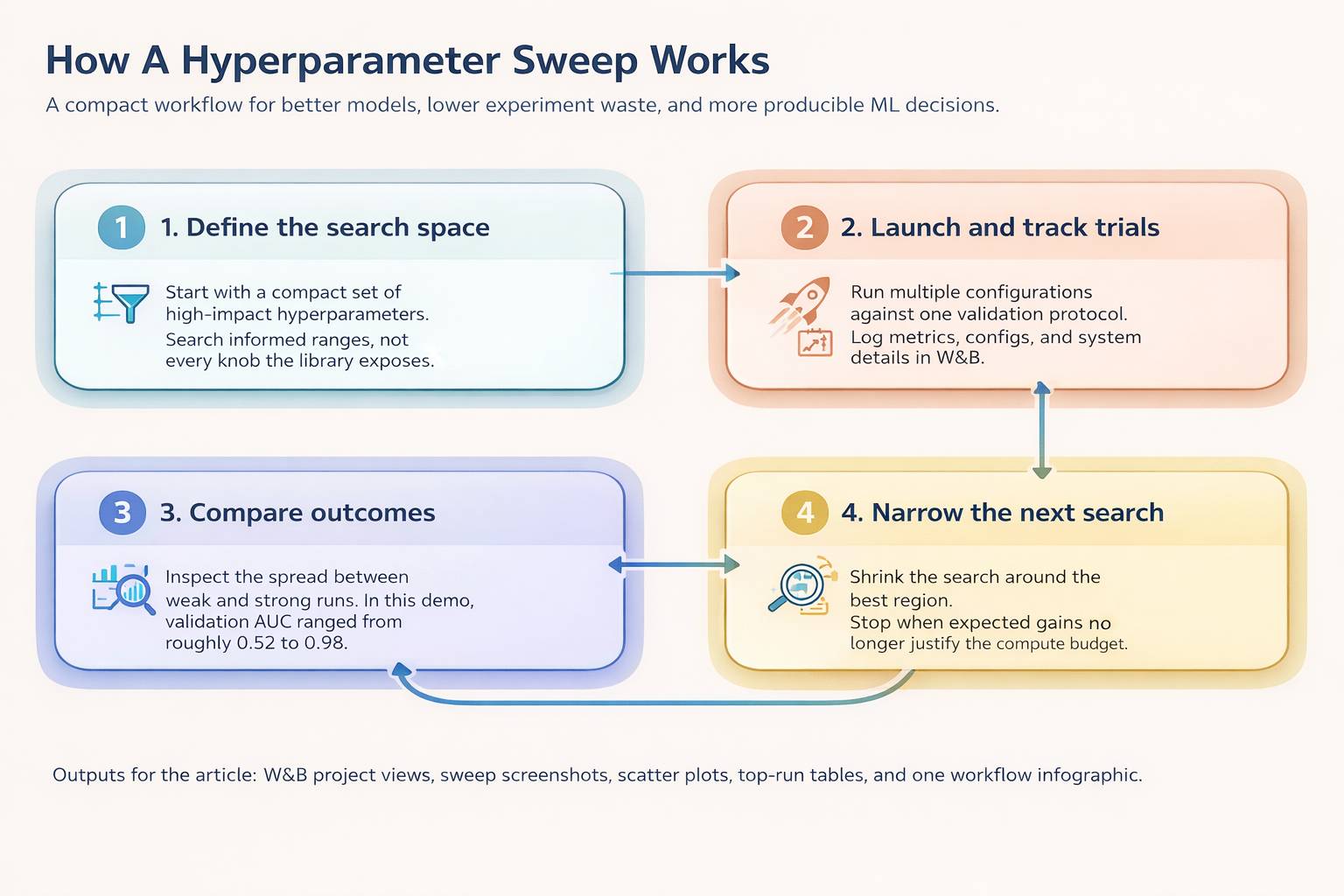 It also makes your work easier to explain. If one run performs better than another, you want to know whether the improvement came from a higher learning rate, a more stable batch size, or stronger regularization. Tuning is not just about the final score. It is also about making the path to that score visible.